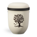 The urn is available painted (with water-based paint) in a velvety cream-white finish, with a black rim around the lid and a tree painted in black.